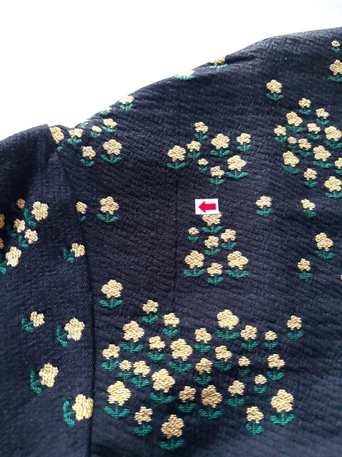※後身頃、全体に数か所縦線状の織りキズがあります。
