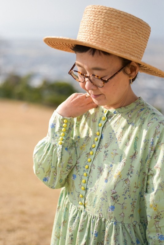 グリーン着用 フリーサイズ、モデル身長150cm