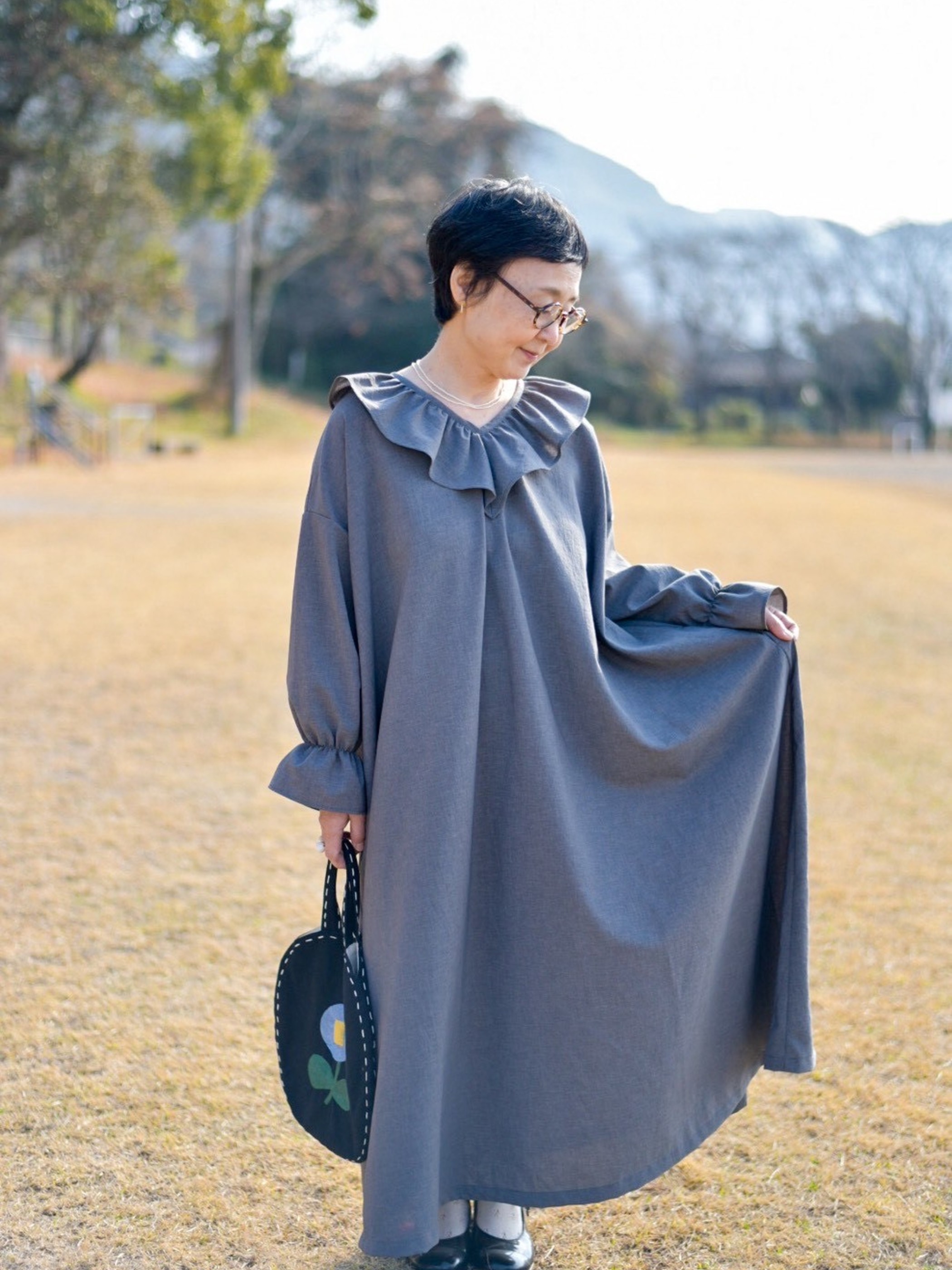 杢グレー着用 フリーサイズ、モデル身長150cm、下部に記載のストーリーもあわせてご覧ください!