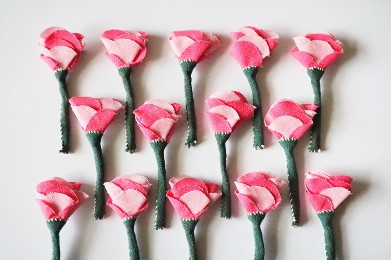 ひとつひとつ、手作りされたお花ブローチはどれも表情が違います。